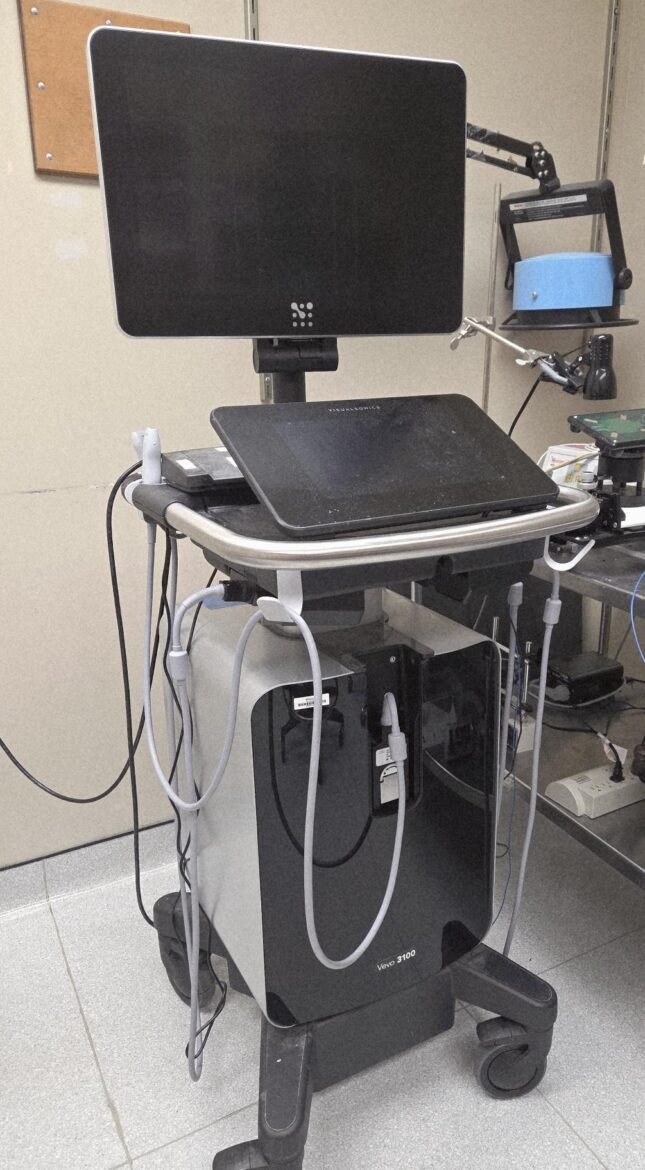Non-invasive transthoracic cardiac ultrasound exam is performed under various anesthetic protocols (unless status of animal precludes anesthesia). A FujiFilm VisualSonic echocardiography machine with multiple transducers is used to characterize the structure and function of the heart and great vessels.